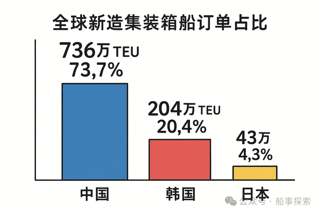 736万标准箱,占订单总量的73.7%——这是中国在新造订单上的绝对领先。