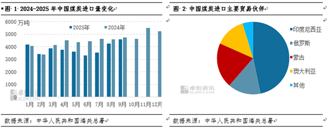 在多重因素共同支撑下,10-12月中国单月煤炭进口量或保持在较高水平。虽下半年以来国内单月煤炭进口量虽较上半年各月有所增长,但由于上半年减量明显,下半年进口量虽或有修复,但难以覆盖上半年减量缺口,2025年煤炭进口总量同比下降或基本已成为确定性事件,卓创资讯预计,全年煤炭进口量或在4.5亿吨左右,或同比减少1亿吨左右。