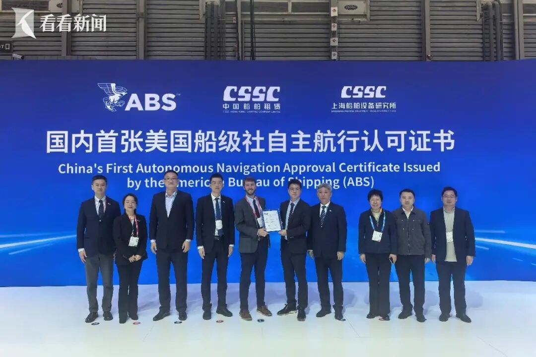 12月4日,在中国国际海事技术学术会议和展览会(MARINTEC CHINA2025)上,搭载中国船舶集团第七〇四研究所自主研发的自主航行系统82000吨散货船“CS JINAN”轮,获得美国船级社(ABS)颁发的中国首张自主航行认可证书,也是全球首艘远洋散货船获得的ABS船级社自主航行认可证书,被业界誉为全球散货船自主航行发展的重要里程碑,将为行业树立新的技术标杆,引领自主航行技术迭代升级。