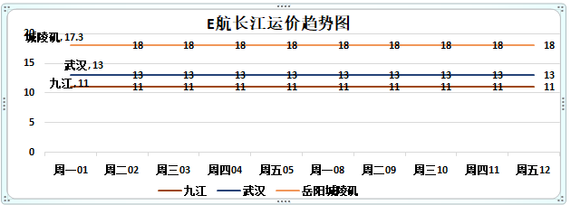 本周长江上下水各航线运价再继续维稳。