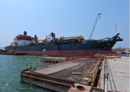 Manson Construction旗下的“Frederick Paup”号专为满足美国疏浚市场需求量身设计建造,最大功率达25000马力,舱容超15000立方码(约合11468.3立方米),是全美规模最大的耙吸式挖泥船。凭借三机Z型驱动系统与双艏侧推装置,该船可在狭窄航道内灵活操控、开展疏浚作业。这一设计进一步提升船舶作业稳定性,即便某一台Z型驱动或艏侧推装置发生机械故障,船舶仍能维持作业效能,最大程度减少施工延误。船舶搭载的动力定位系统则赋予其额外作业灵活性,疏浚作业期间可精准保持船位固定或沿指定航线航行。