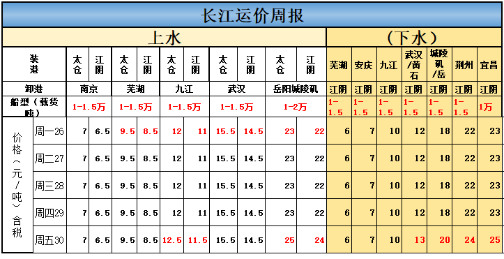 本周长江运价涨跌
