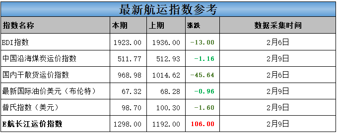E航长江指数上涨106为1298;
