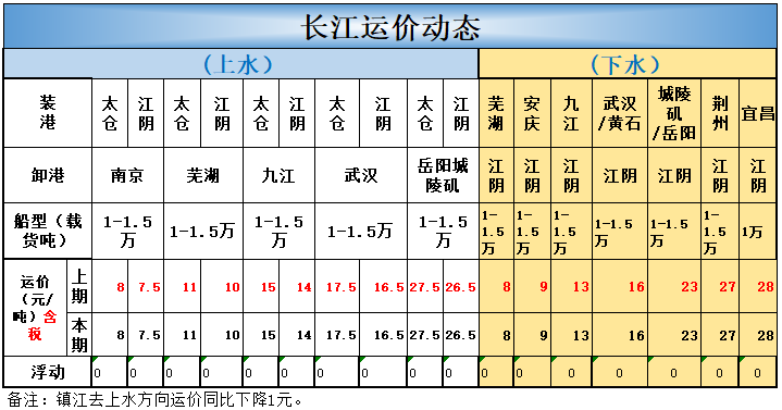 长江下水运价: