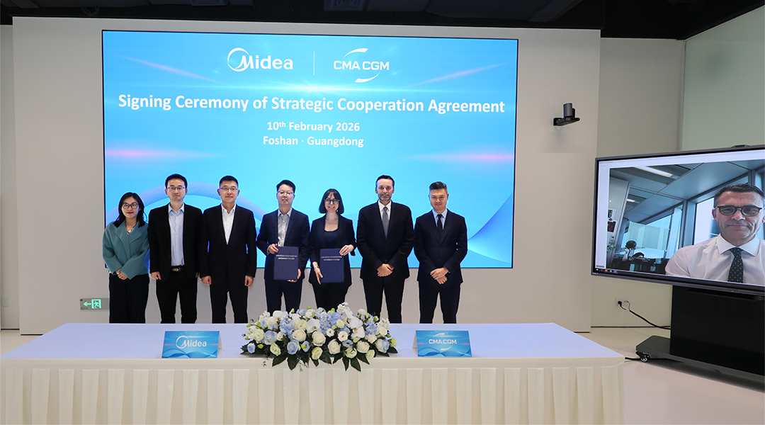 2月10日,达飞集团与美的集团正式签署战略合作备忘录,旨在深化双方全球范围内的战略协作,共同探索物流与技术创新,打造更智能、高效、可持续的端到端供应链解决方案。美的集团副总裁兼智能家居事业群总裁赵磊、达飞集团亚太区首席航线官Gregory Fourcin、达飞中国总经理白司澜(Esra BORA)及相关代表,出席签约仪式,达飞集团航运执行副总裁Olivier Nivoix,在线上见证了这一重要时刻。双方团队在签约前就具体合作事宜,进行了深入磋商。