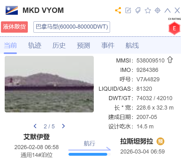 据船舶管理方证实,在阿曼近海航行的油轮“MKD Vyom”轮(7.4万载重吨,2007年建造)遭不明投射物击中,引发爆炸和船上火灾,造成一名船员死亡。这也是本轮霍尔木兹海峡周边紧张局势中,首例确认的船员遇难事件。