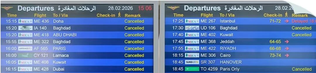 最新获悉,截至今天上午,中东三大枢纽(迪拜、多哈、阿布扎比)机场全面停飞,阿联酋航空、卡塔尔航空、阿提哈德航空等暂停全部航班,停航导致全球数千架航班取消、改道,旅客大量滞留中东各国机场。