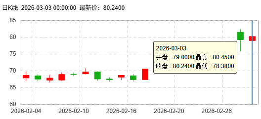 周二布伦特指数暴涨到77美元区域附近。今日,美原油价格偏强运行,目前交投于71.7美元/桶附近。美以与伊朗之间的军事冲突持续升级,伊朗方面宣称霍尔木兹海峡已被关闭,将打击任何试图通过的船只,以及沙特最大炼油厂遇袭关闭,供应中断的担忧持续发酵,市场避险情绪升温,周一国际原油价格大幅飙升。当前中东局势走向面临高度不确定,短期多头情绪依然高涨。