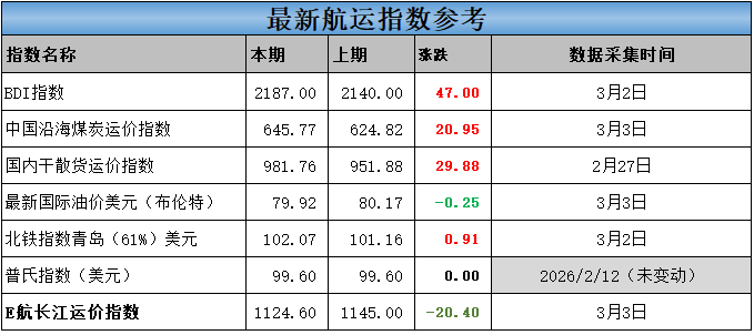 当天最新航运相关指数