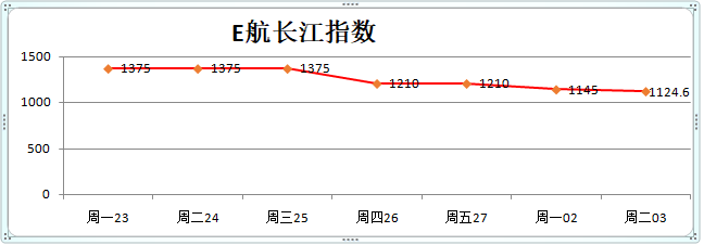 周二长江上下水部分航线运价继续小幅调整。