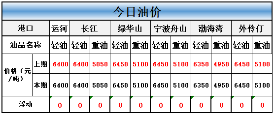今天外港船燃价格和上期比均暂维稳。具体价格如下图。