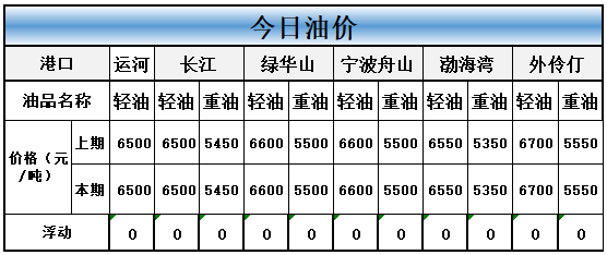 今天外港船燃价格和上期比均暂无调整。具体价格如下图。