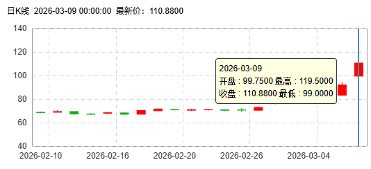 周一布伦特指数上涨到110美元区域附近。今日,美原油价格大幅拉升冲高,日内一度暴涨逾30%。中东局势进一步升级,市场对于霍尔木兹海峡运输风险的担忧持续升温,地缘风险溢价快速抬升,并且中东主要产油国被迫减产,导致全球能源供应进一步收紧,国际原油价格剧烈飙升,盘中突破110美元/桶。目前双方暂未表露任何和解意向,市场对持久战预期升温,后续海峡通航情况将成主导油价走势的关键性因素。