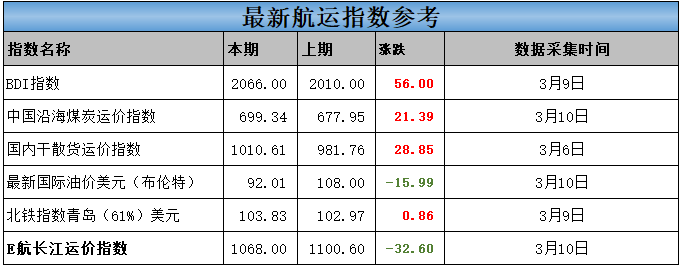 华南航线5.3-5.7万吨运价上涨2元;5.7-7.5万吨运价上涨2元;