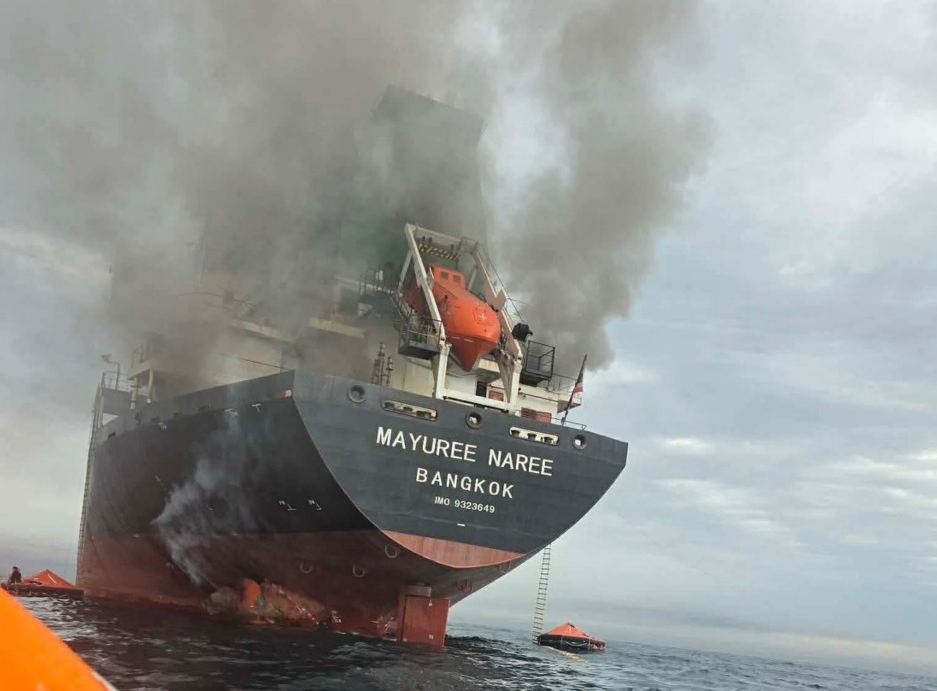 据泰国船东珍宝航运(Precious Shipping)披露,散货船“Mayuree Naree”轮在穿越霍尔木兹海峡时遭到两枚来源不明的抛射物击中,事故导致船舶起火,并对机舱区域造成损坏。
