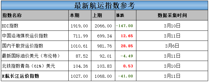 今天大通流量为17900,和上期比持平。三峡出库流量今天为8760立方米/秒左右,当前长江市场需求端仍处低位;沿江电厂库存较高,日耗提升不大。非电货源需求不足。加上年后长江沿线运力结束休航,持续回流,造成船多货少,排队等货局面。