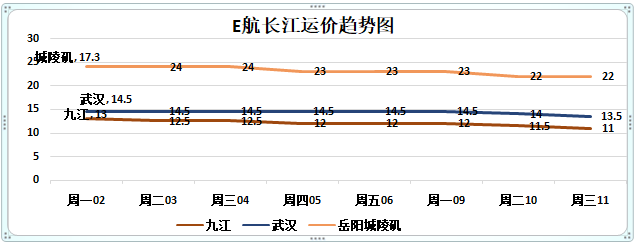 江阴到武汉运价下跌0.5元为13.5元/吨;
