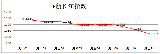 长江下水各航线运价均下跌,其中上游部分航线下跌较多;