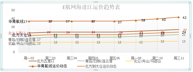 海进江运价分析主要基于具有行业一定权威性的多家船东提供出来的运价数据,仅供参考。