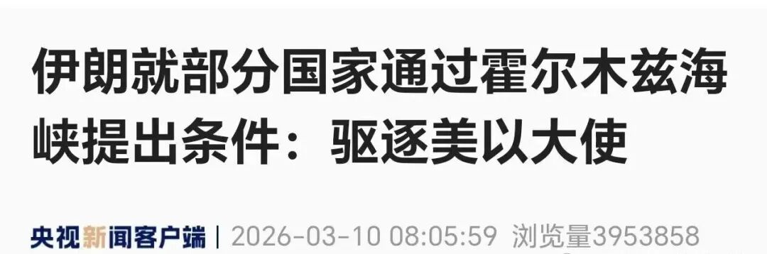 据霍尔木兹海峡危机进入第11天,市场开始变幻莫测!最新获悉:伊朗伊斯兰革命卫队说,任何将以色列和美国大使驱逐出境的阿拉伯国家或欧洲国家,可从3月11日起拥有霍尔木兹海峡的完全通行权。伊朗最高国家安全委员会秘书拉里贾尼9日说,只要美国和以色列仍对伊朗进行军事打击,霍尔木兹海峡的安全就无法得以恢复。