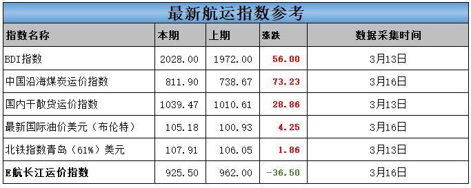 华南航线5.3-5.7万吨运价上涨4元;5.7-7.5万吨运价上涨5元;