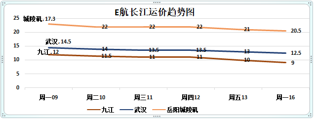 长江下水芜湖安庆运价下跌0.5元;九江芜湖岳阳荆州宜昌运价均下跌1元;