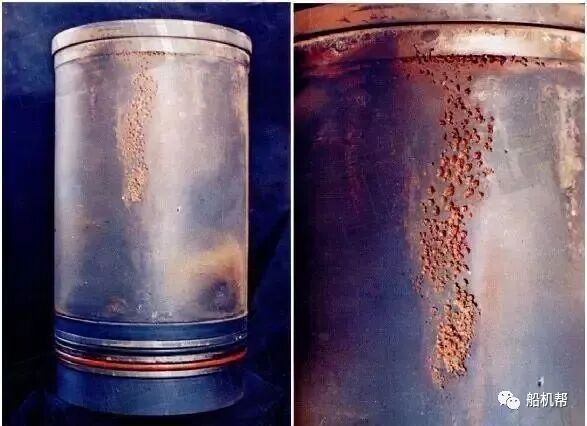 每到一个大修检验期或是不到一个大修检验期就需要转换另一组新缸套,但是一般缸套的寿命也只是三个大修期,因此穴蚀问题更需要引起重视。