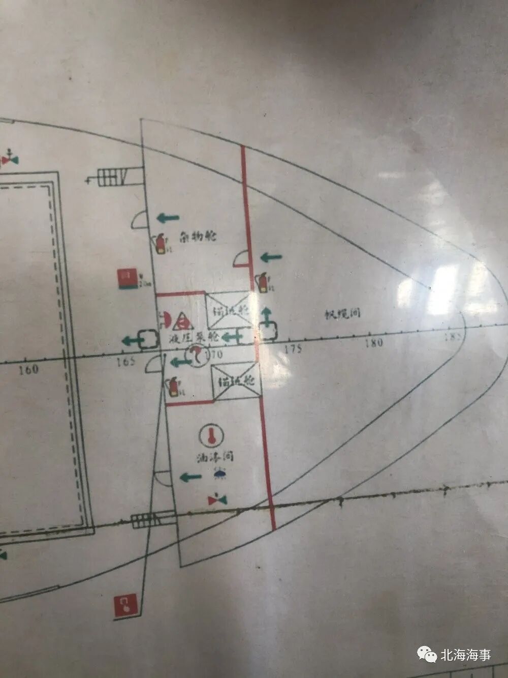 四、船首油漆间、杂物舱、液压泵舱相连通,与防火控制图A类防火分隔不符