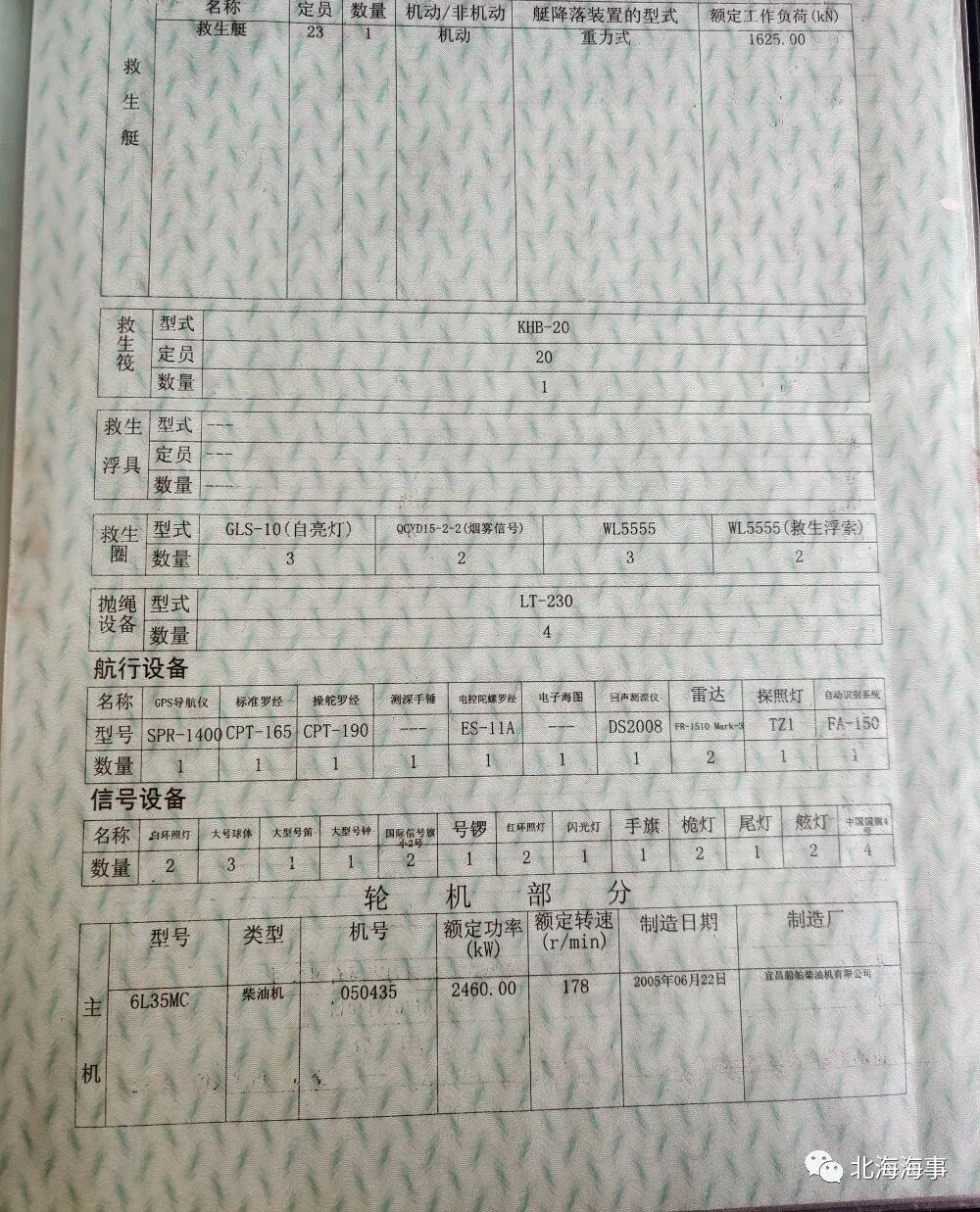 七、GPS导航仪、操舵罗经、雷达、自动识别系统型号与船检证书不一致