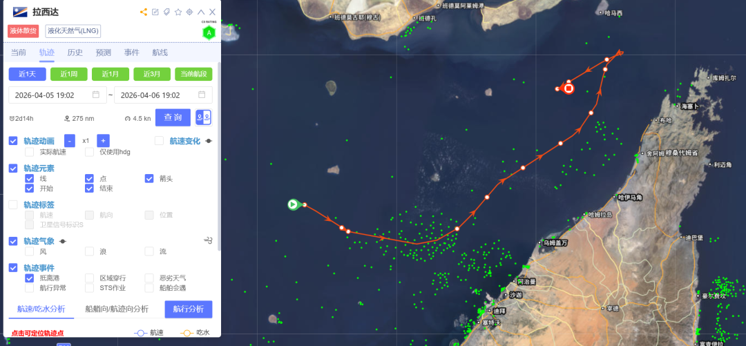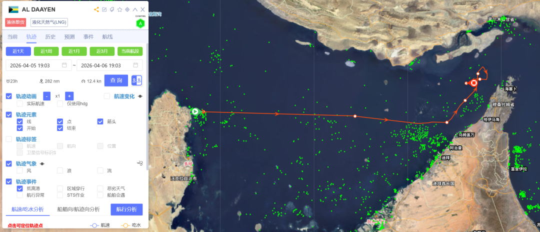 ▲“Al Daayen”轮轨迹,图源:船视宝