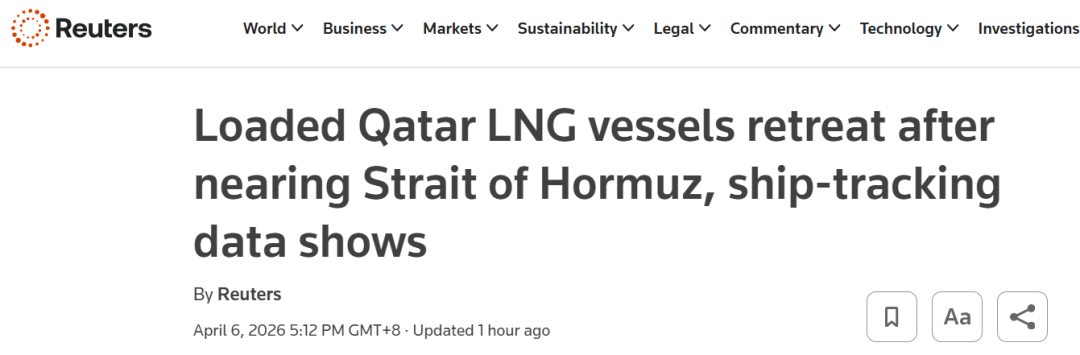据路透社消息,两艘自卡塔尔Ras Laffan装载液化天然气(LNG)的运输船,在一度向东驶向霍尔木兹海峡后选择掉头返航。