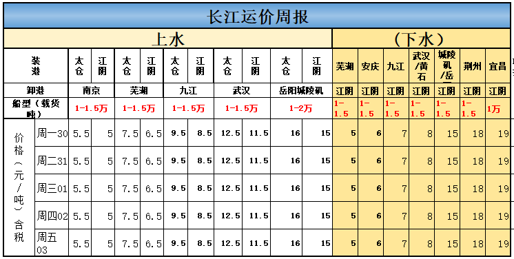 本周长江运价涨跌