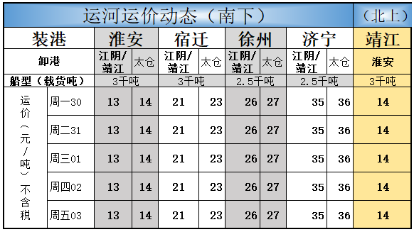 本周运河运价分析