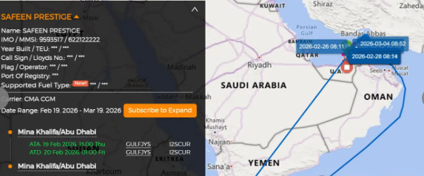 6、已确认集装箱船“Safeen Prestige”轮在霍尔木兹海峡遇袭沉没