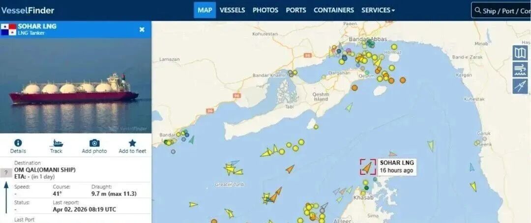 不过,最新动态显示,这一局面正在出现松动。阿曼籍LNG运输船 Sohar 已进入霍尔木兹海峡水域,与此同时,还有两艘满载原油的VLCC正在尝试通过海峡。