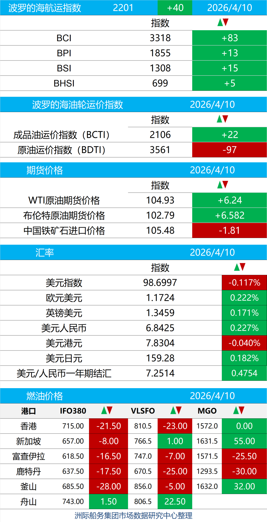航运新闻早知道 2026.04.13 2026-04-13 N EWS 综合资讯 1、【合同】4月9日,华商能源科技股份有限公司与卓航海运集团股份有限公司正式签署6300m³液氨加注运输船液货系统项目合同,标志着首套船用氨加注液货系统正式落地。 据悉,地中海航运最近与广船国际签署了2+2艘3500车道米LNG双燃料客滚船建造合同,每艘可搭载多达2500名乘客。预计新船单价超过1.6亿美元,备选订单确认生效后合同总金额约为6.4亿美元(约合人民币46.6亿元)。据悉,地中海航运最近与广船国际签署了2+2艘3500车道米LNG双燃料客滚船建造合同,每艘可搭载多达2500名乘客。预计新船单价超过1.6亿美元,备选订单确认生效后合同总金额约为6.4亿美元(约合人民币46.6亿元)。据悉,地中海航运最近与广船国际签署了2+2艘3500车道米LNG双燃料客滚船建造合同,每艘可搭载多达2500名乘客。预计新船单价超过1.6亿美元,备选订单确认生效后合同总金额约为6.4亿美元(约合人民币46.6亿元)。 2、【交付】4月10日,大连中远海运重工迎来“双喜临门”,为中远海运发展建造的80000吨多用途粮食运输船第二艘“国智海”轮交付命名,第三艘“国明海”轮同步命名。 3、【建造】4月9日,韩国韩华海洋宣布与大洋洲地区船东签订了2艘超大型原油运输船(VLCC)建造合同。这份合同总金额为3933亿韩元(约合2.66亿美元、18.17亿元人民币),相当于单船造价1.33亿美元。预计新船将在2030年1月交付。作为参考,克拉克森的数据显示,目前一艘传统燃料315000-320000载重吨VLCC新造船价格为1.295亿美元,相比去年同期的1.25亿美元上涨约4%。 4、【合同】4月11日,扬州龙和造船有限公司(龙和造船)与洋浦中鑫船务有限公司(洋浦中鑫船务)签订3+2艘114000载重吨LR2型油船建造合同,总造价20亿元。 5、【命名】4月10日,中船黄埔文冲船舶有限公司为挪威Grieg Maritime集团建造的3艘82300DWT多用途船在黄埔文冲龙穴厂区举行命名仪式,分别被命名为“STAR NORDKAPP”、“STAR NARVIK”、“STAR NAGA”。 6、【合同】4月9日,巴西矿业巨头淡水河谷(VALE)通过官网宣布,该公司已与山东海运就2艘乙醇/甲醇/船用燃油三燃料Guaibamax型超大型矿砂船(VLOC)签订为期25年的包运合同。 7、【AIP】三点水新能源科技有限公司宣布,近日,该公司自主研发的88.9米电动集装箱散货两用船——河豚蔚蓝02,继斩获法国船级社(BV)原则性认可(AIP)证书后,再度拿下挪威船级社(DNV)颁发的AIP认证。至此,作为全球首制PACK换电船的河豚蔚蓝系列船型,已成功获得全球三大船级社认可。 D ATA 航运指数 来源:洲际船务 所有文章未经授权禁止转载、摘编、复制或建立镜像,违规转载法律必究。